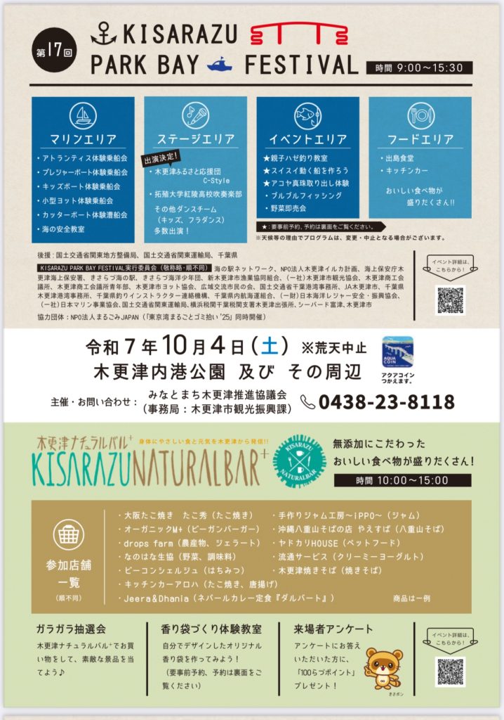 10月4日(土)に千葉県木更津市で『KISARAZU PARK BAY • FESTIVAL 』が開催され、私たちも参加します⚓️