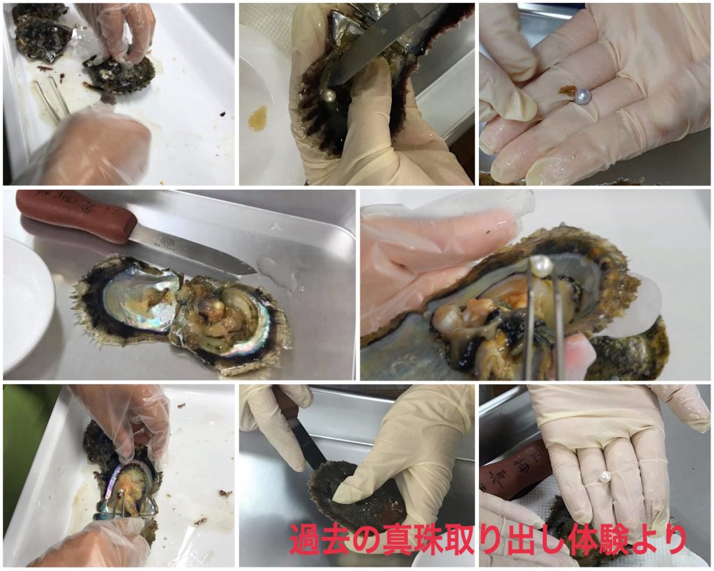 その後,実際にあこや貝から真珠を取り出す体験をします。